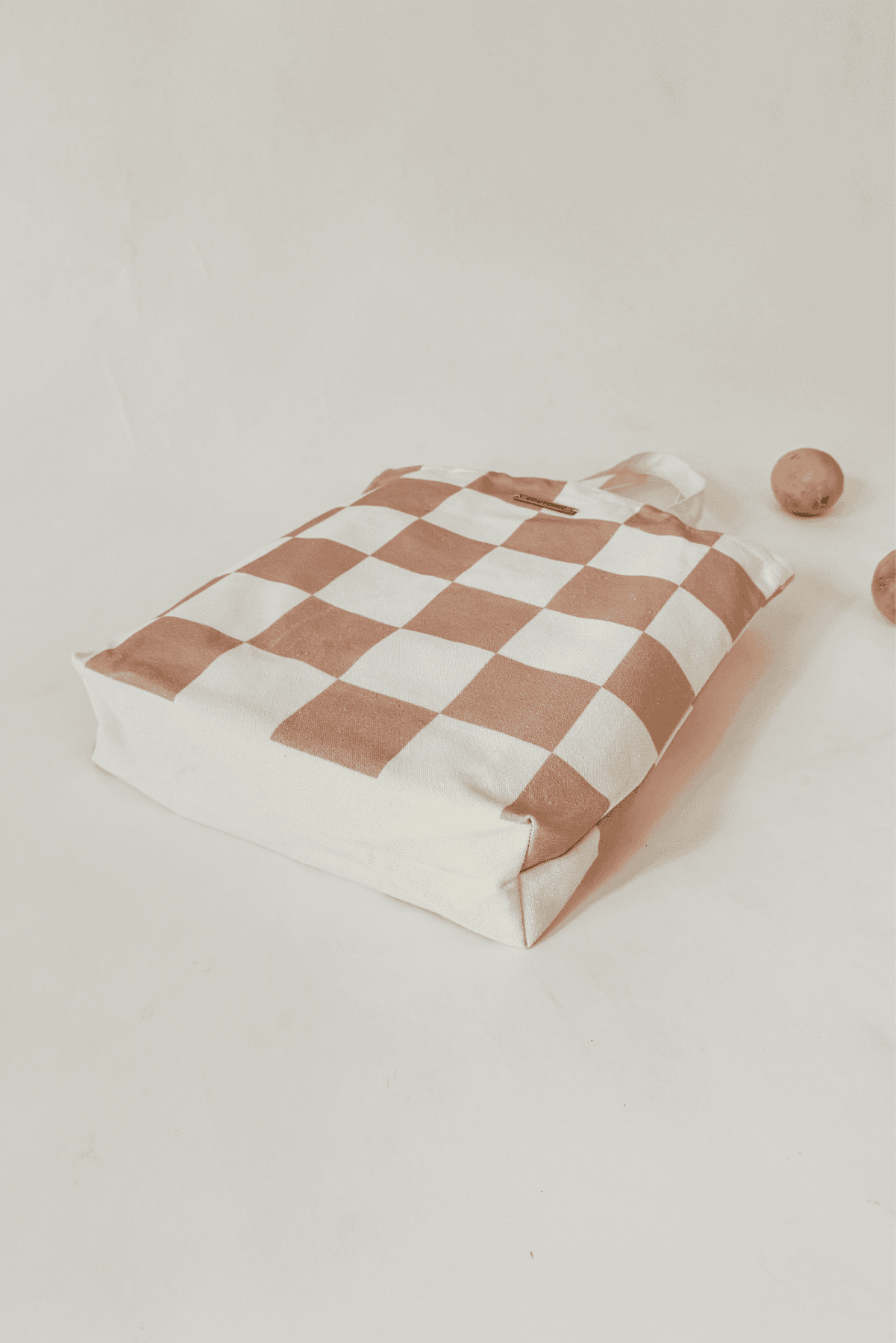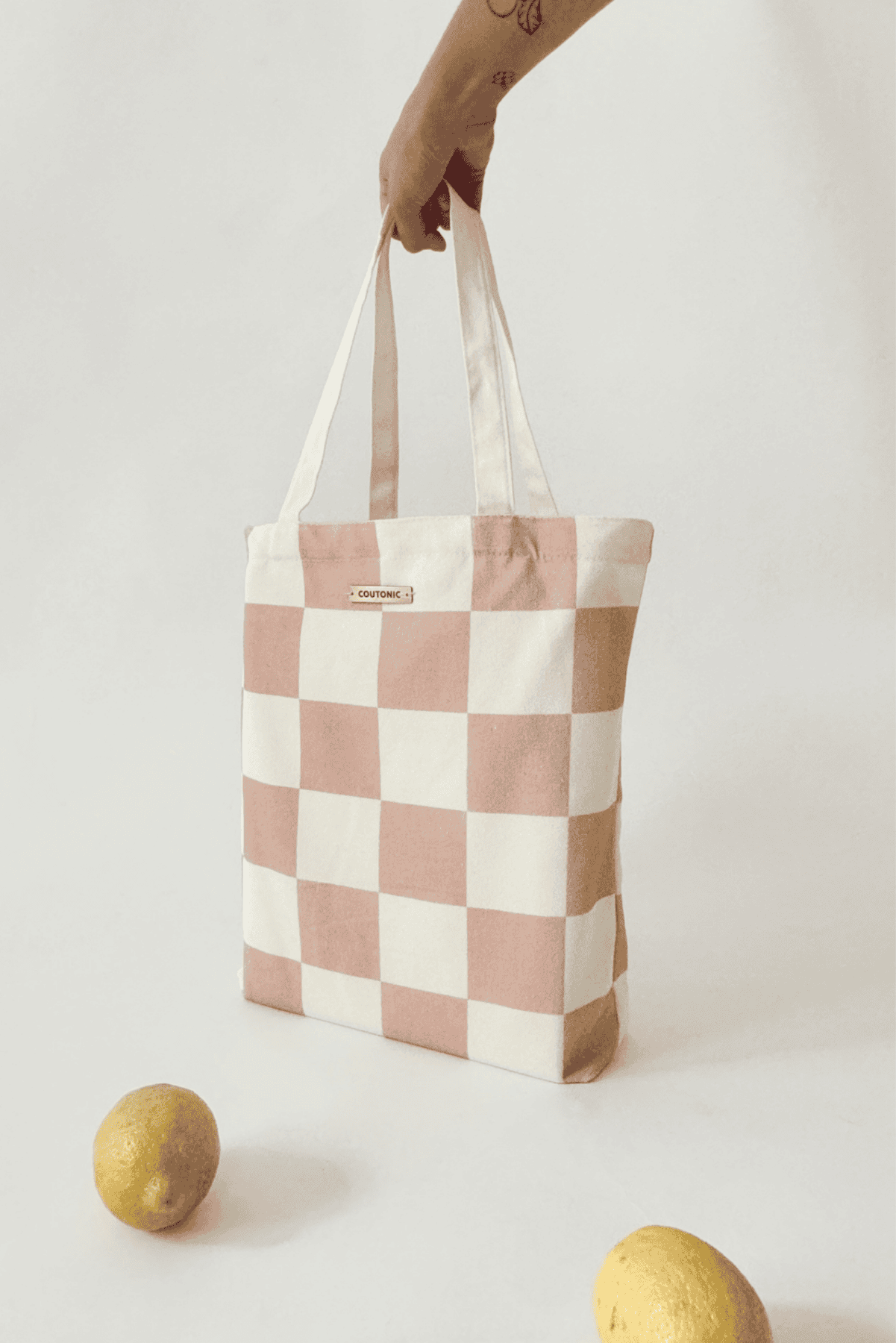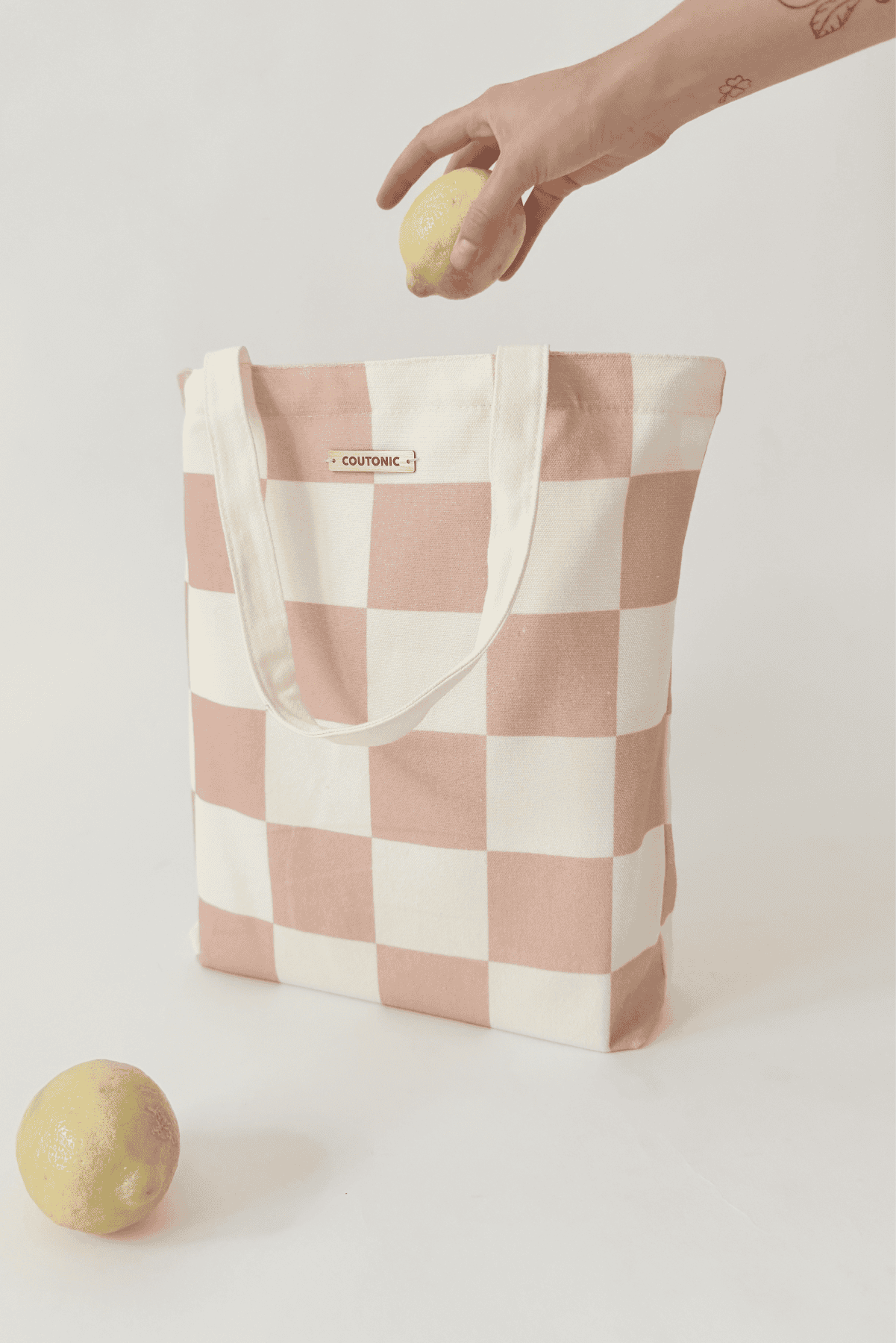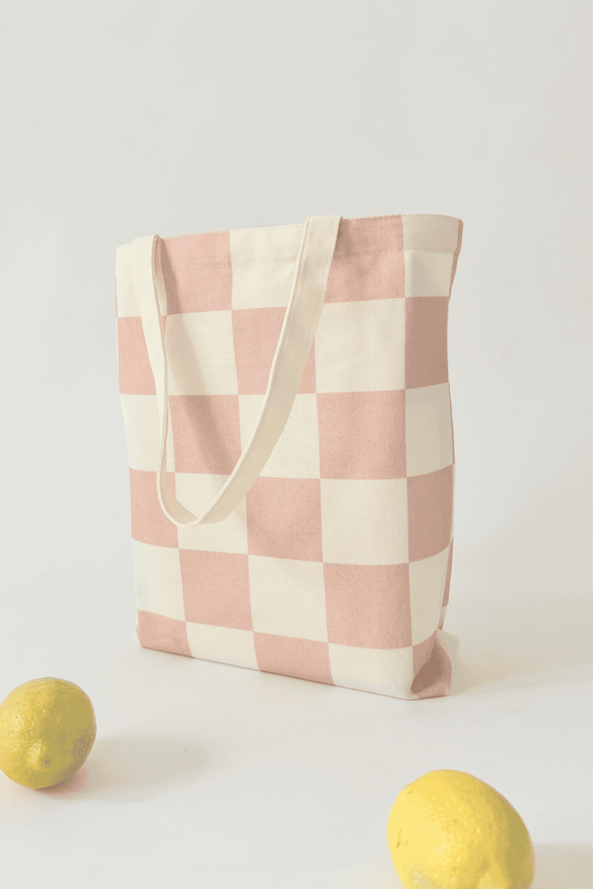 Organic Cotton Seashell Pink Checker Tote 2.0