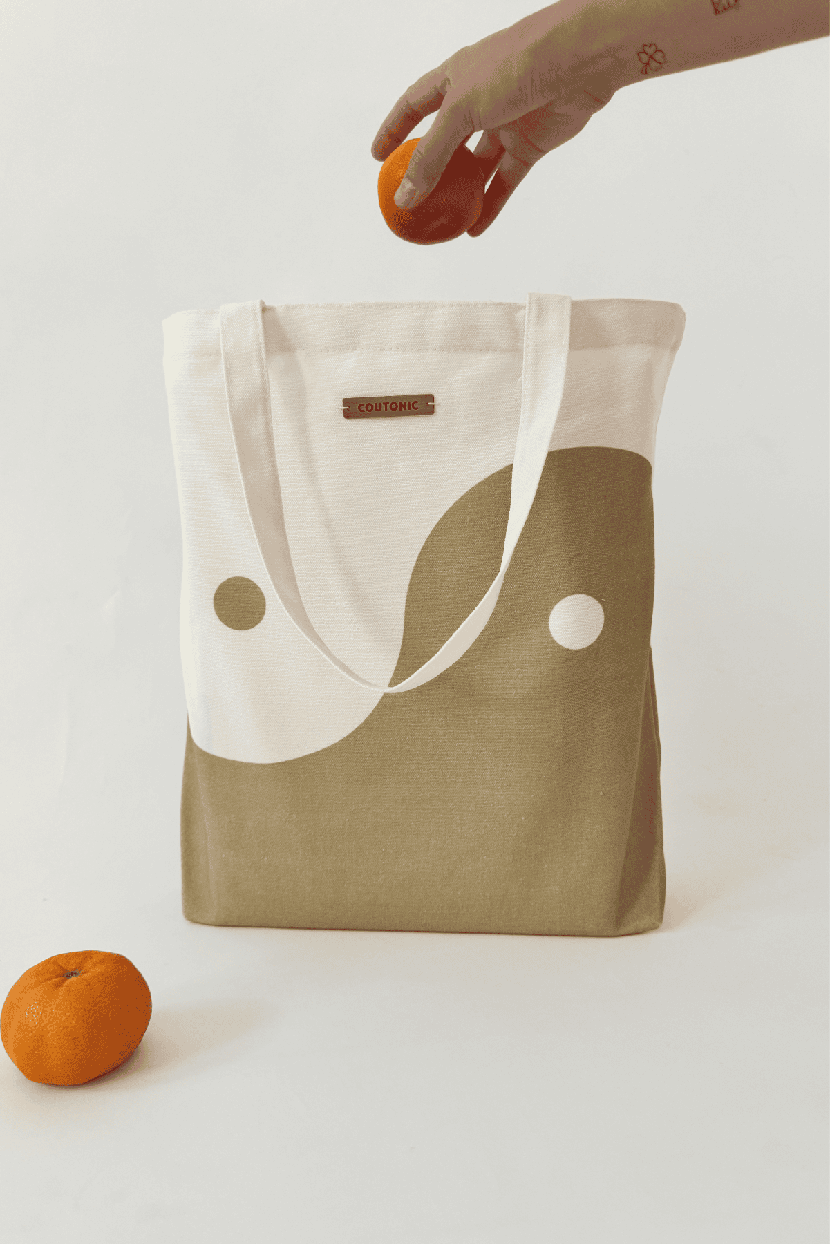 Embrace the harmony of nature with the Yin Yang Tote from COUTONIC. This Organic Cotton Seaweed Green Yin Yang Tote 2.0 has everything the original design has, but better! Crafted from GOTS certified organic cotton, Yin and Yang motif design, engraved COUTONIC label and comfortable carrying straps. By carrying this stylish accessory, you not only express your individuality but also contribute to a greener world, making a positive impact on the environment. So, whether you're heading to the beach, shopping, or simply exploring the city, let this bag be a constant reminder to stay balanced and aligned with the universe's flow.
