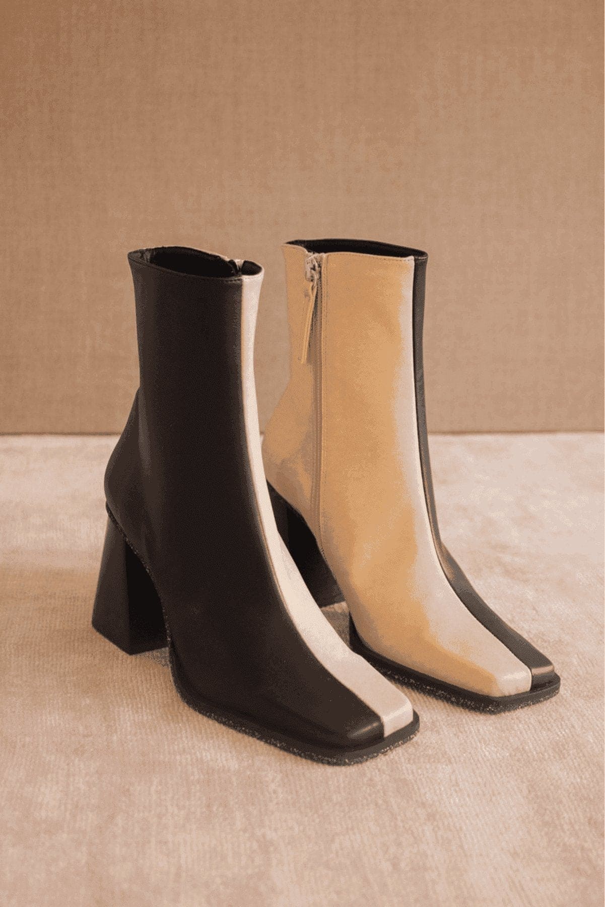 Get the quintessential 90s look with the wide block heel on this slim ankle boot. Zips along the side to elongate the legs and create a flattering silhouette. Heel, cap, lining all made of recycled materials.