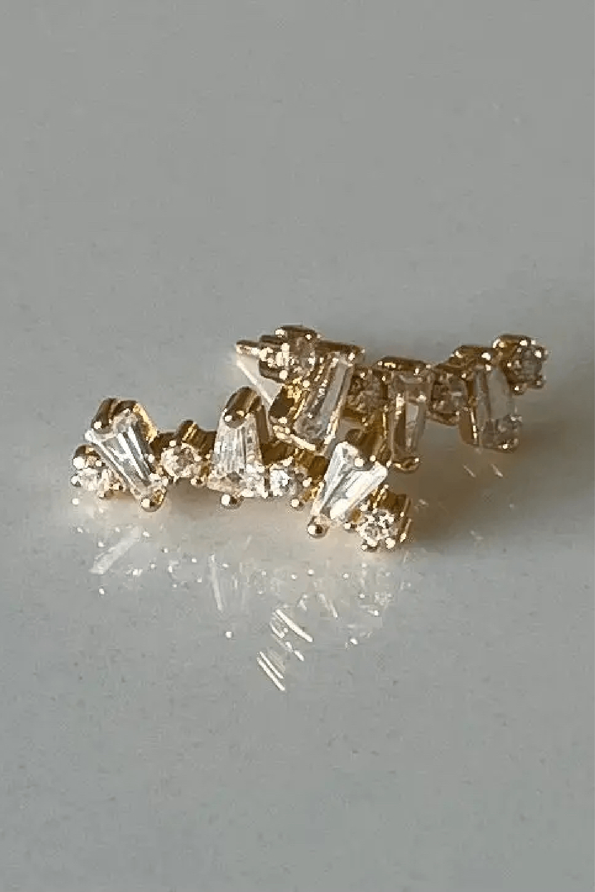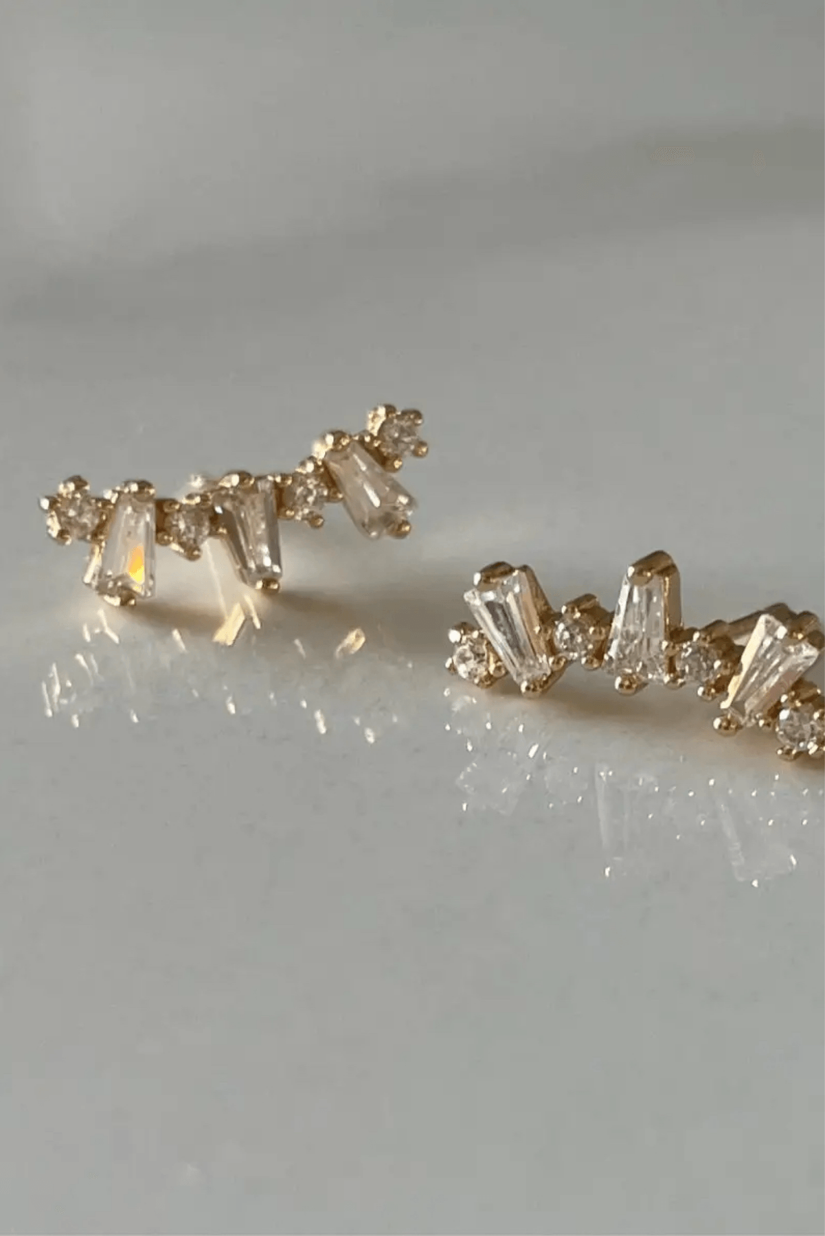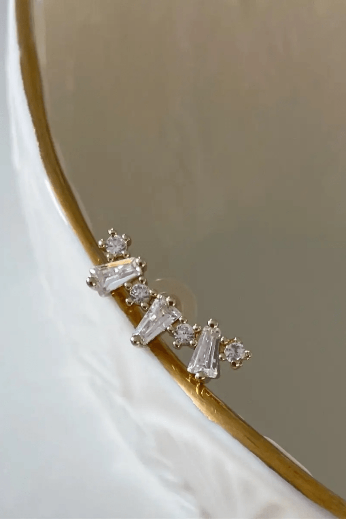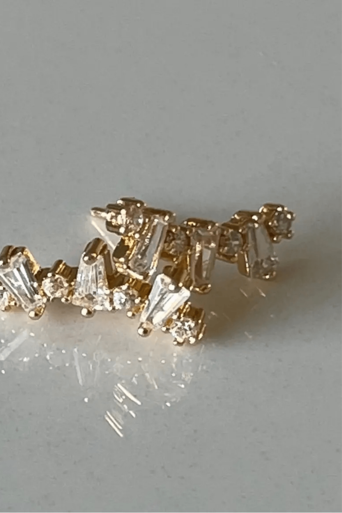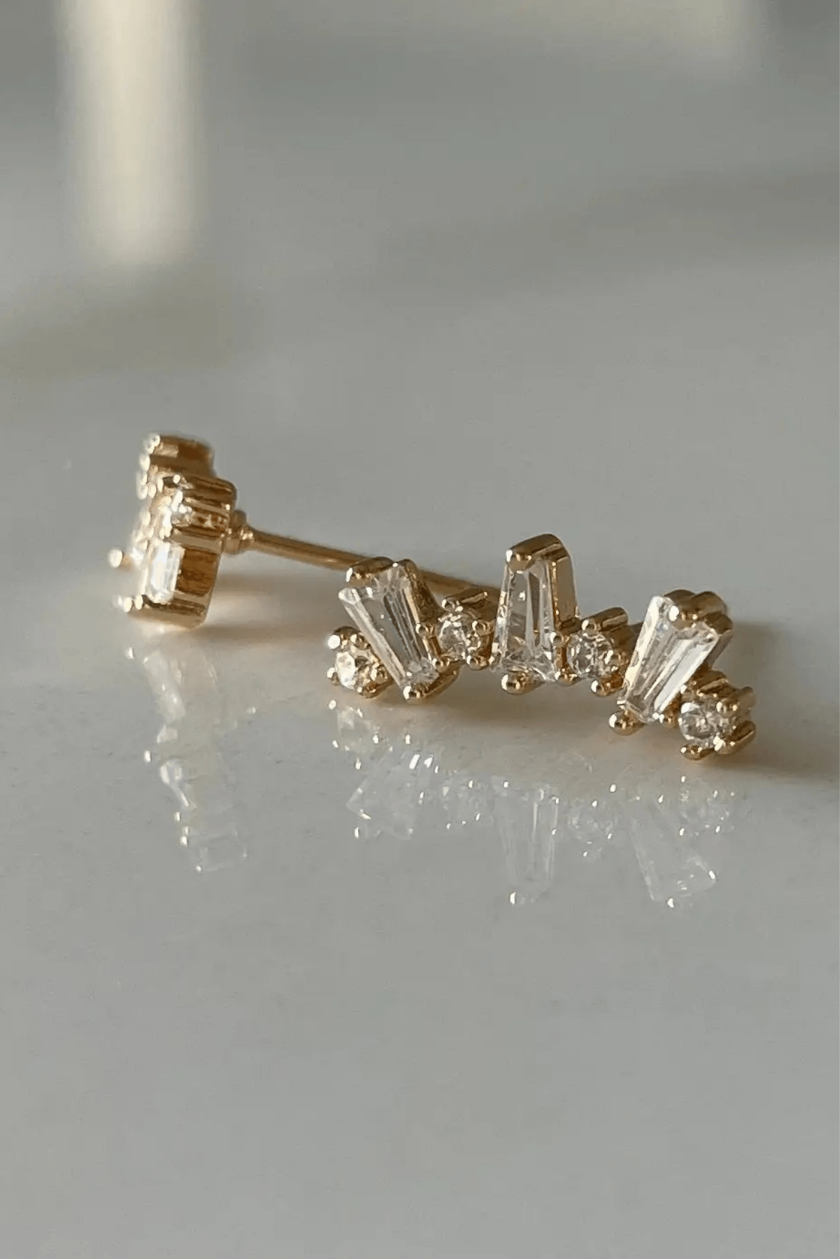• Crystal Stone Stud Earrings - Cubic Zirconium Crystal Arrangement Earrings