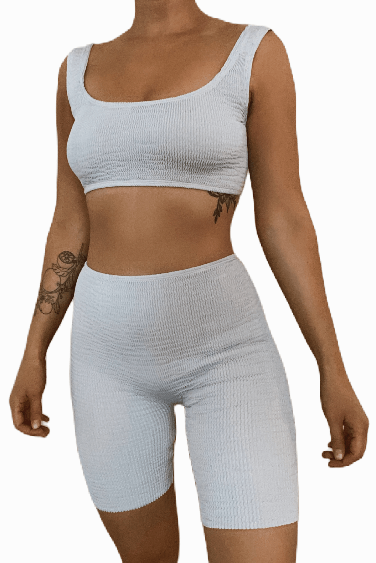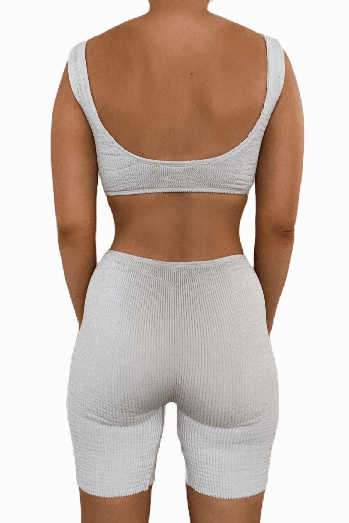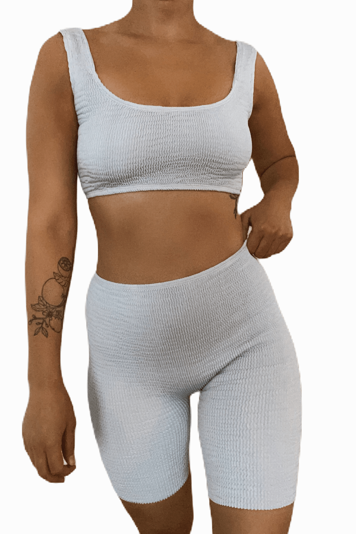 The Recycled Nylon Cloud Gray Rip Bikini Top is the classic sports crop cut bikini top. Great support and suits busts A-E cup. Pair with our Recycled Nylon East Coast Gray Bike Shorts to complete this set.